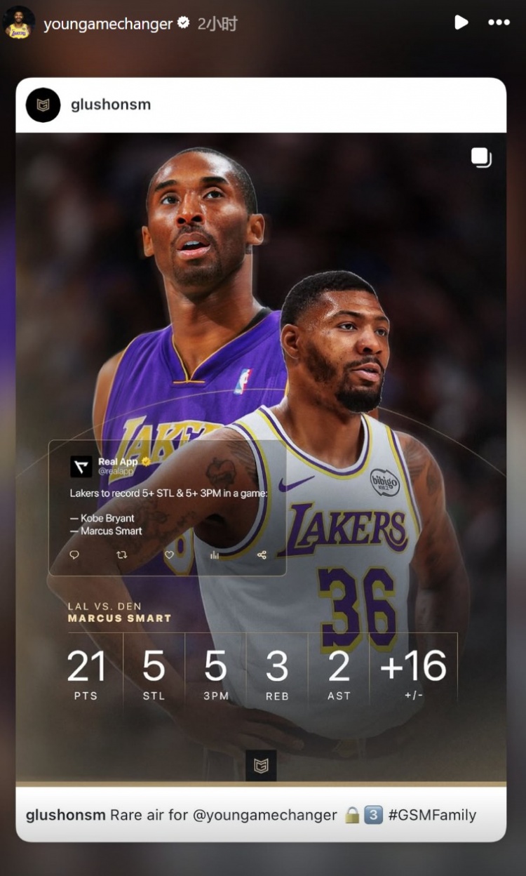 开云体育平台-斯玛特单场至少5抢断5三分 湖人队史第二人&比肩科比